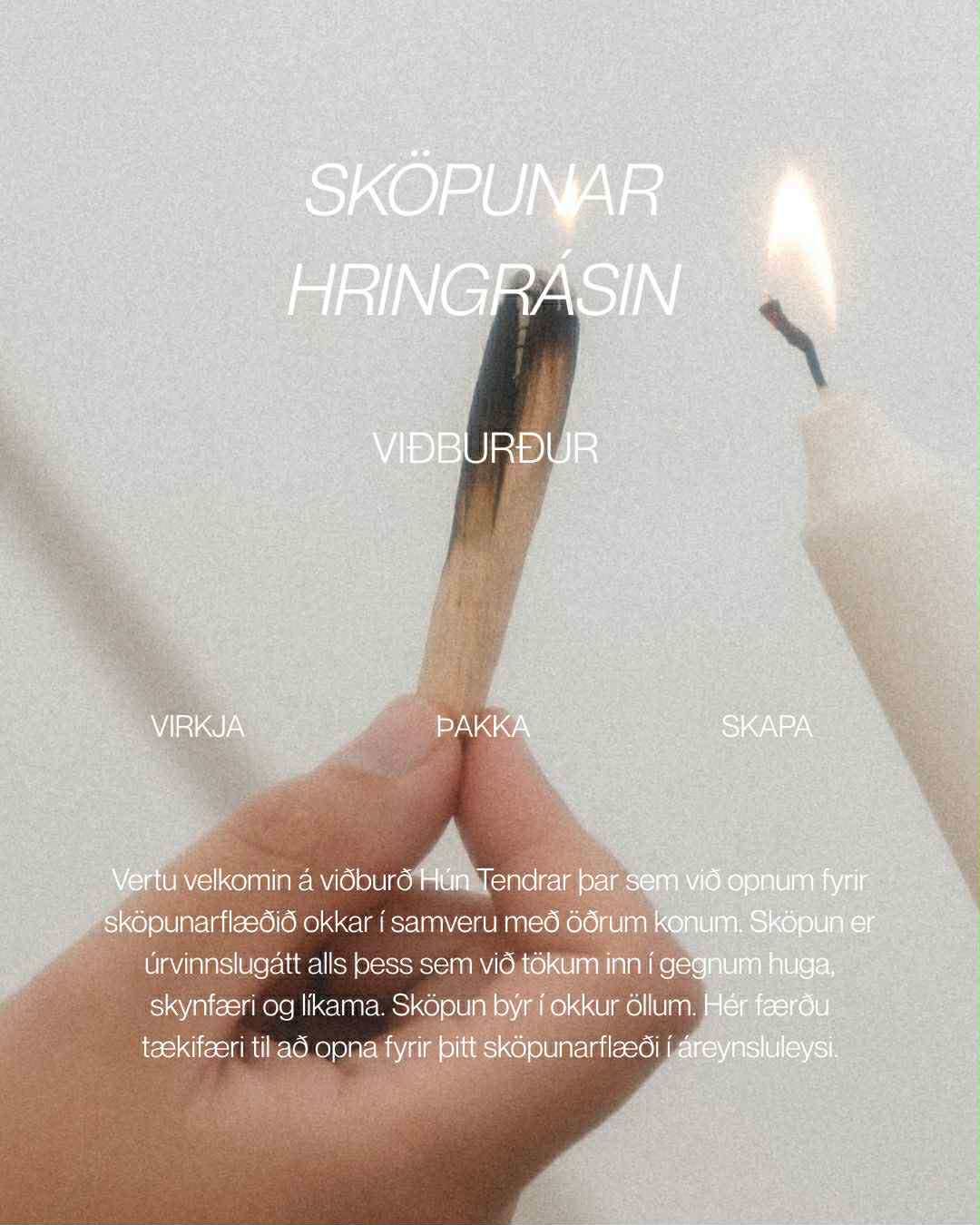 Vertu velkomin á viðburð Hún Tendrar þar sem við opnum fyrir sköpunarflæðið okkar í samveru með öðrum konum.